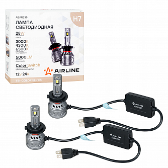Лампа светодиодная H7 TRI-COLOR, 28Вт, 5000Лм (2500Лм x 2), 3000/4300/6500K (Белый/Желтый), 12/24В, комплект 2 шт.