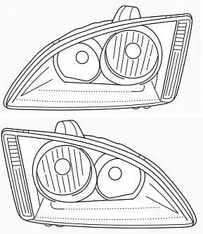 Фары для автомобилей Ford Focus II (05-) (головного света) галоген, электрический корректор, цвет рамы: черный, комплект: левая и правая (2 штуки)