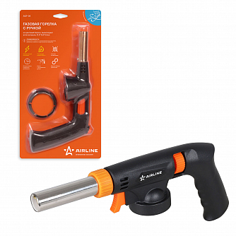 Горелка газовая на цанговый баллон, пьезоподжиг, анти-вспышка, ручка, 165*334мм