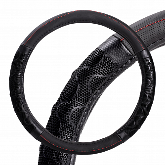 Оплетка на руль, искусст. кожа, с ПВХ рельефом, черная, 38 см/М