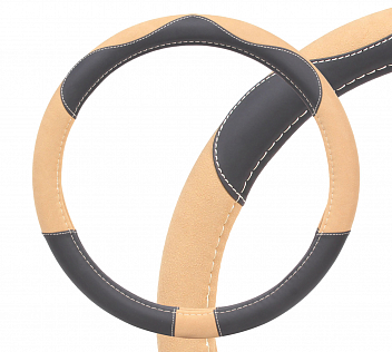 Оплетка на руль, искусственная замша/кожа, песочная/черная, 38 см / M