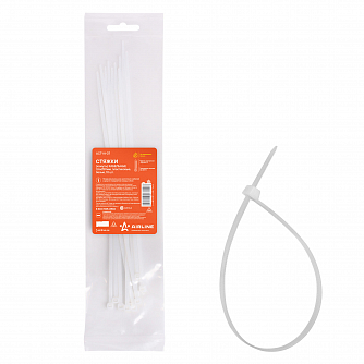 Стяжки (хомуты) кабельные 3,6*250 мм, пластиковые, белые, 10 шт.