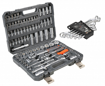 Набор инструментов 94пр. (головки 1/2", 1/4") кейс + ключи накидн.дюйм. 6пр. (5/16"-15/16")