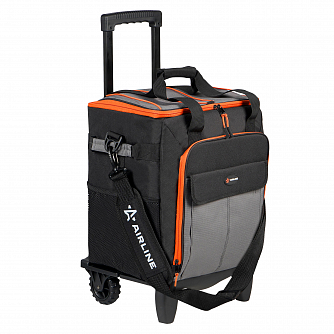 Сумка-холодильник (термосумка) на колесах с телескоп.ручкой 48 л, водонепр., черн./сер./оранж.