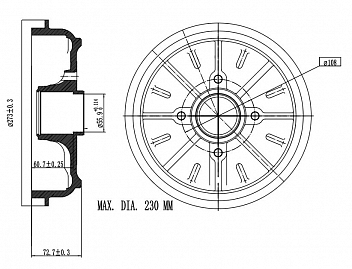 Барабаны тормозные для автомобилей Peugeot 207 (06-) d=228.6 без подшипника