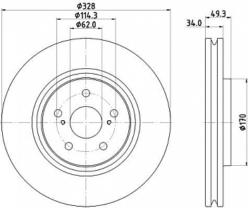 Количество на автомобиль2Сторона установкиПередняя осьОсобенности конструкцииСлотированный, перфорированныйТип дискаВентилируемыйГарантийный срок2 года / 60 000 кмВнешний диаметр, мм328Диаметр центрирования, мм62Высота, мм49,6Толщина диска, мм28Мин. толщина тормозного диска, мм25Количество крепежных отверстий5Диаметр располож. креп. отверстий, мм114,3Разболтовка (PCD)5*114,3Сопутствующий товар: Колодки тормозные дисковыеТоварная линейкаBLACKКоличество в коробке.2Финишное покрытиеE-Coating (глянцевый черный цвет)Объем, м30.008Вес, кг.9.65Гарантийный срок2 года / 60 000 кмСрок годностиНе ограниченСтрана изготовленияКитай