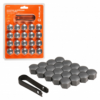 Колпачки на колесные болты/гайки 17 мм, серые матовые, пластик, 20 шт.+ съёмник