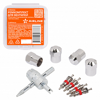 Ремкомплект для вентилей (4 золотника, 4 металл.колп, 1 метчик) в кейсе