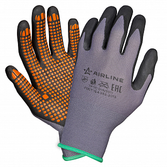 Перчатки нейлоновые с нитриловым покрытием ладони (М) сер./черн./оранж., с подвесом