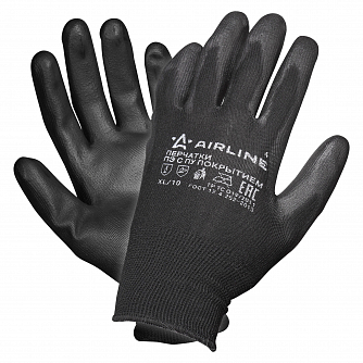 Перчатки полиэфирные с цельным ПУ покрытием ладони (XL) черн./сер.