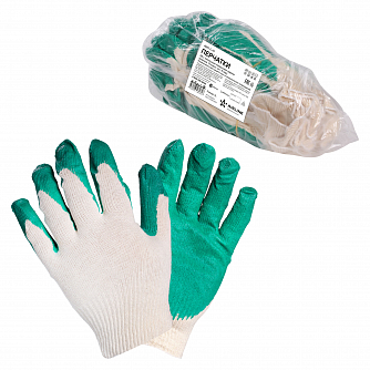 Перчатки трикотажные ХБ с латексным покрытием ладони, зеленые, (к-т 5 пар) 13 класс, модель AM_ct24ll
