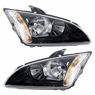 Фары для автомобилей Ford Focus II (05-) (головного света) галоген, электрический корректор, цвет рамы: черный, комплект: левая и правая (2 штуки)