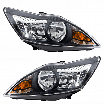 Фары для автомобилей Ford Focus II (05-) (головного света) рестайлинг, галоген, электрический корректор., цвет рамы: черный, комплект: левая и правая (2 штуки)