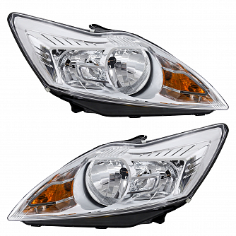 Фары для автомобилей Ford Focus II (05-) (головного света) рестайлинг, галоген, электрический корректор., цвет рамы: хром, комплект: левая и правая (2 штуки)