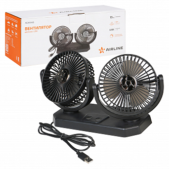 Вентилятор в салон двойной поворотный 360, 2x13см, 5В USB, раздельная регулировка, скотч