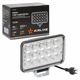Фара светодиодная прямоугольная, 15LED, рассеянный свет (Ближний/Дальний), 45Вт, 165x108x74мм, 12/24В, PRO