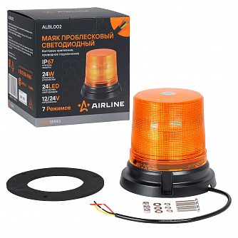 Маяк проблесковый светодиодный PRO, 24Вт, 24LED, 12/24В, 7 режимов, болтовое крепление, проводное подключение, D-130мм, H-122мм