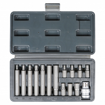 Набор бит вставок шестигранных 3/8" 30мм и 75мм с держателем бит 1/2" DR 15 предметов в кейсе