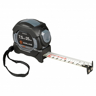 Рулетка в прорезиненном корпусе 7.5мх25мм PRO, автостоп дв.магнит.зацеп,нейлон двуст.шкала