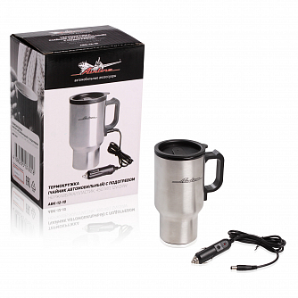 Термокружка (чайник автомобильный) с подогревом, нержавейка/пластик, 450 мл, 12V, 24W