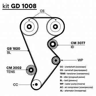 Ремкомплект ГРМ для автомобилей Chery IndiS S18D (10-) 1.3i (1 ремень HNBR/2 ролика)