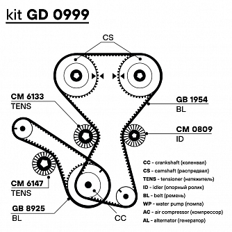 Ремкомплект ГРМ для автомобилей Mitsubishi Lancer (96-) 1.8i/2.0i (2 ремня HNBR/3 ролика)
