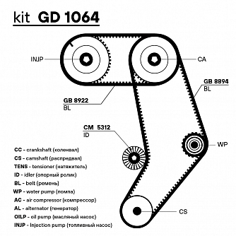 Ремкомплект ГРМ для автомобилей VW Transporter (90-) 2.4d (ремень HNBR 2 шт./1 ролик)