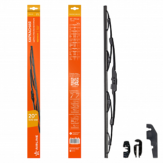 Каркасная конструкция щетки стеклоочистителя — это качество, проверенное десятилетиями. Такие щетки являются самыми доступными по цене, обладает высокой прочностью, и лучшими показателями прилегания резинок к стеклу автомобиля. К классической форме щетки производители AIRLINE добавили изменения в составе резины, позволяющие продлить ее срок использования. В комплект добавленны адаптеры подходящие для 3-х типов крепления: "крючок" HOOK 9x3/9x4, HOOK 8x3, Bayonet arm 8x3 для установки на самые распространенные марки автомобиля. -