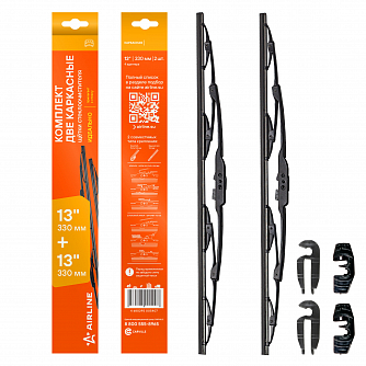 Щетки стеклооч комплект (2 штуки) 330/330мм (13"/13") каркасные с креплением "Крючок 9х3, 9х4 мм" (AWBJ001) МП-серия