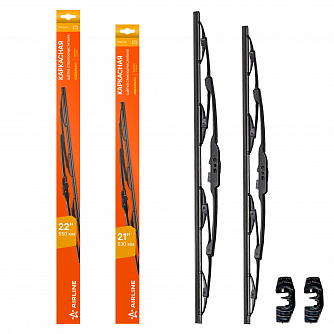 - Щетки стеклооч комплект (2 штуки) 550/530мм (22"/21") каркасные с креплением "Крючок 9х3, 9х4 мм" (AWBJ007) МП-серия