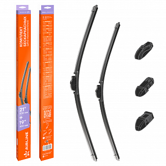 Щетки стеклоочистителя 530/480мм (21"/19") бескаркасные для а/м Skoda Octavia (96-04), Toyota Camry (96-02), Mazda 3 (03-08), Subaru Forester (97-07), комплект, 3 типа адаптера